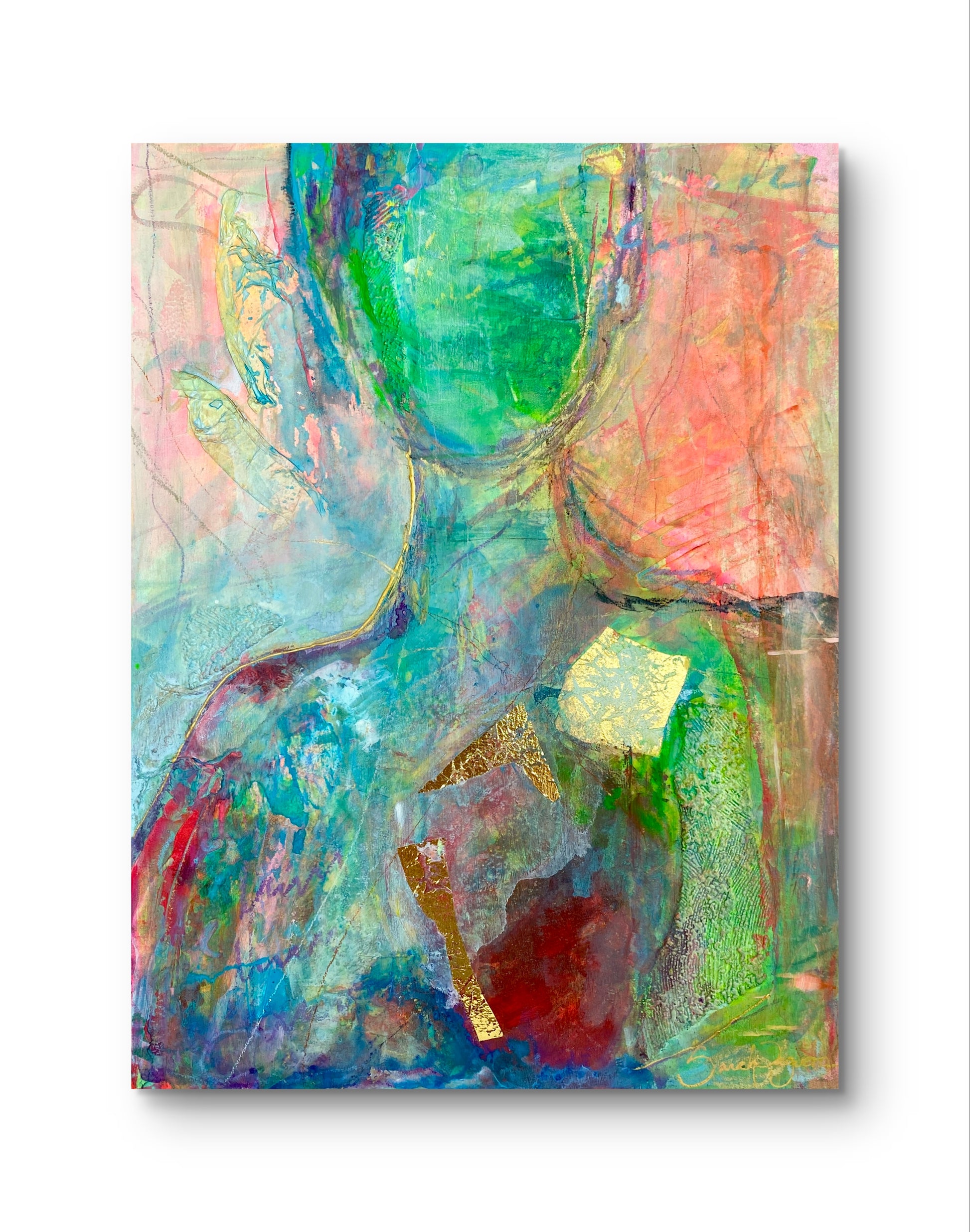 Unique painting created with acrylics, oil pastels, charcoal and gold details on WOOD PANEL
