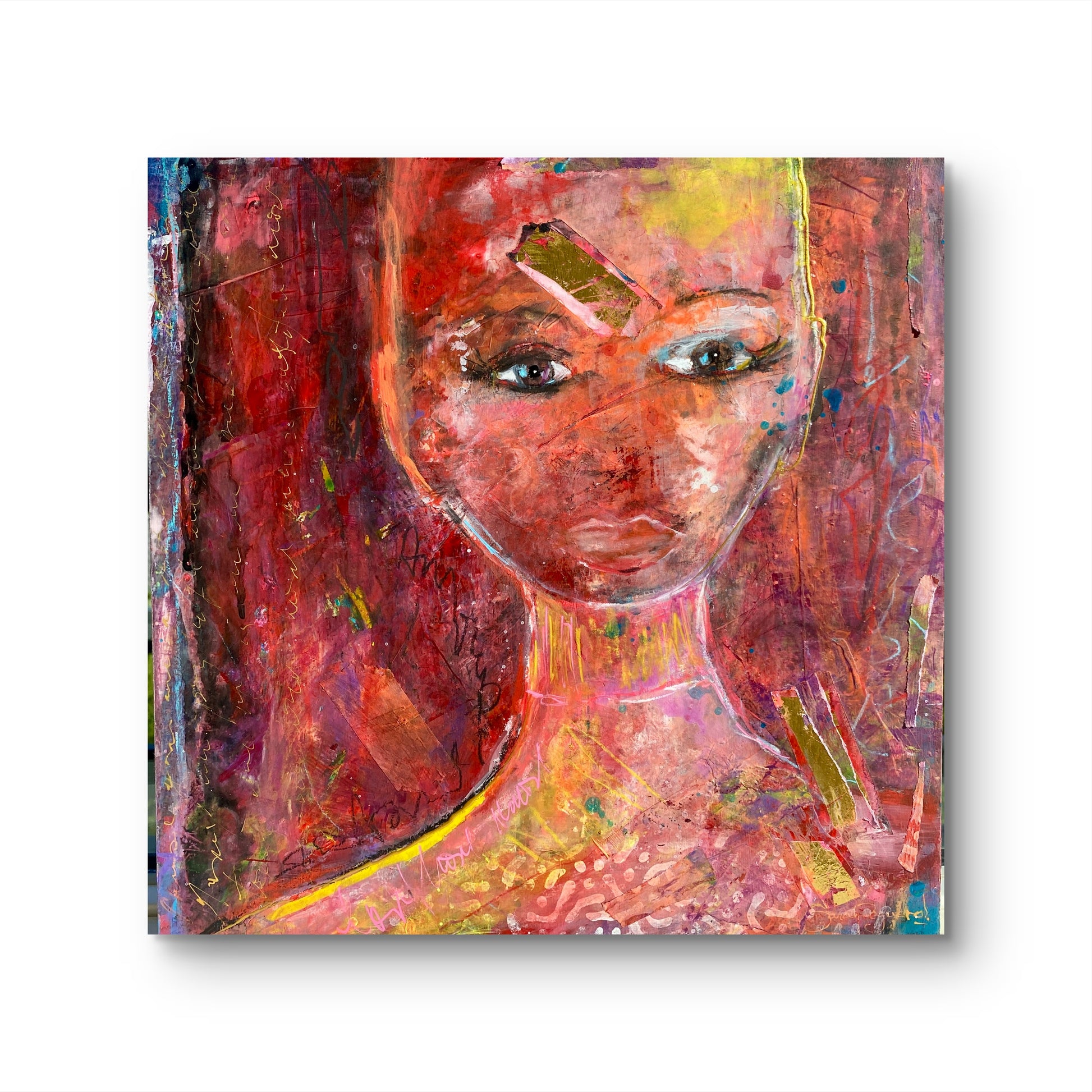 Unique painting created with acrylics, oil pastels, charcoal and gold details on WOOD PANEL