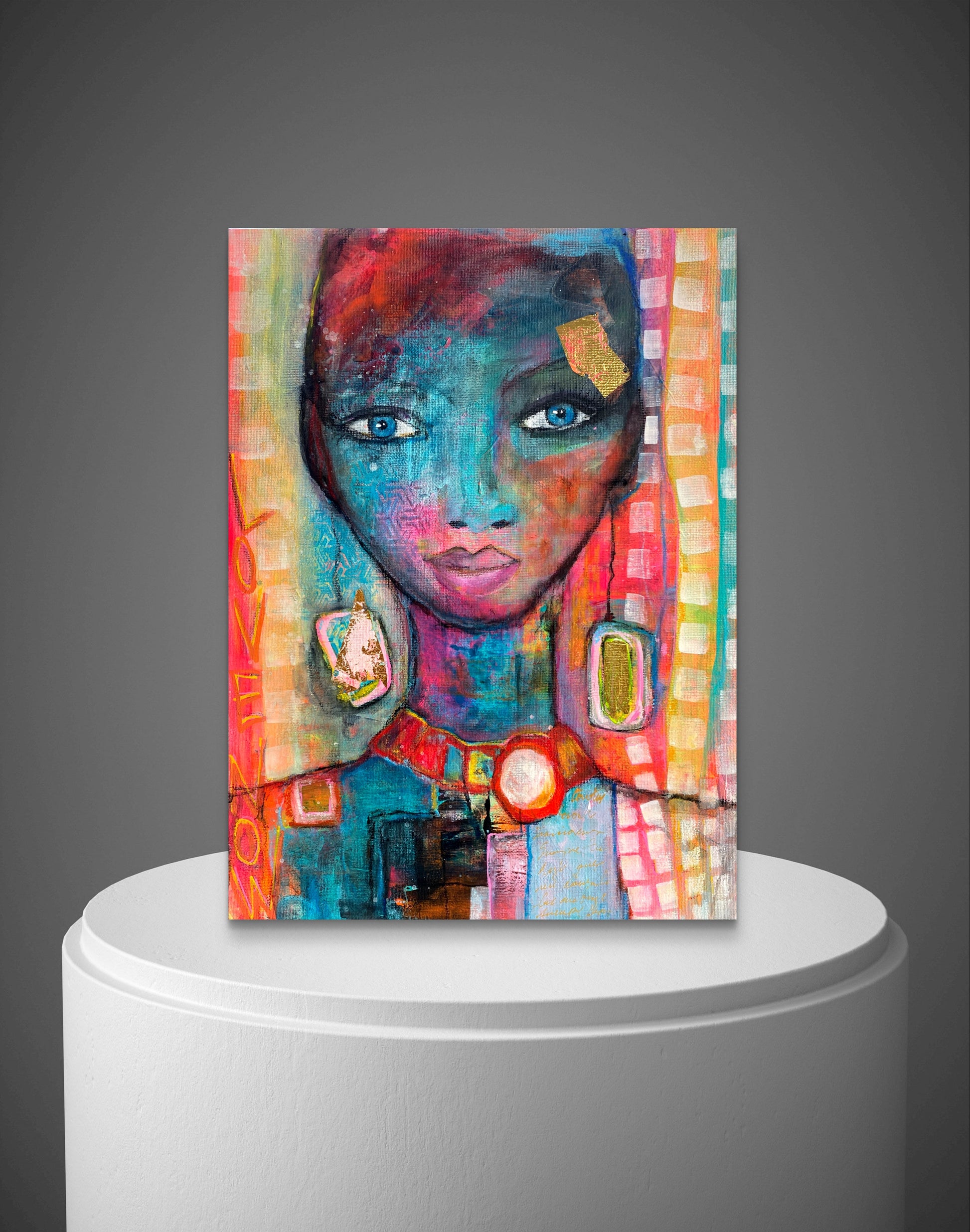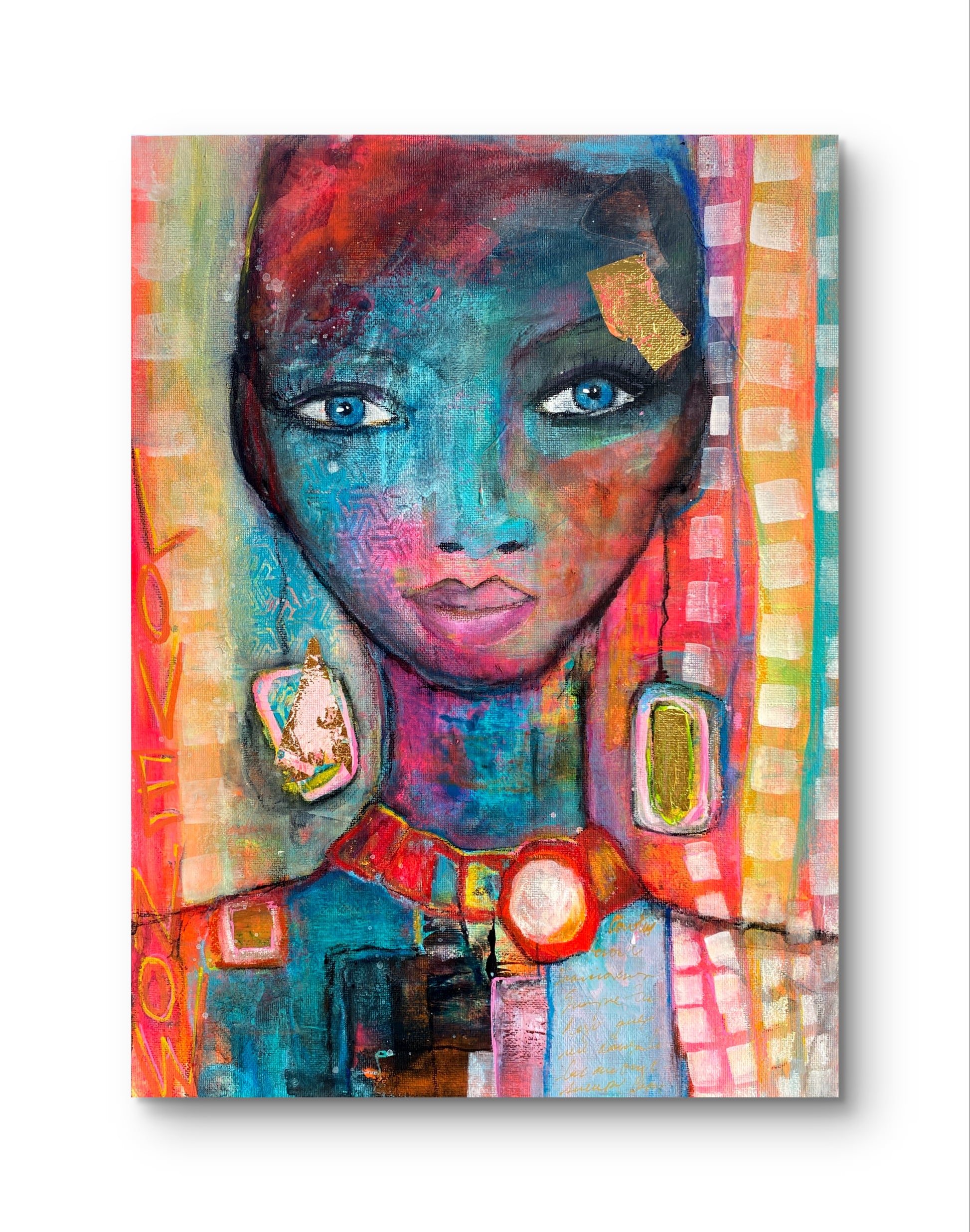 Unique painting created with acrylics, oil pastels, charcoal and gold details on CANVAS PANEL