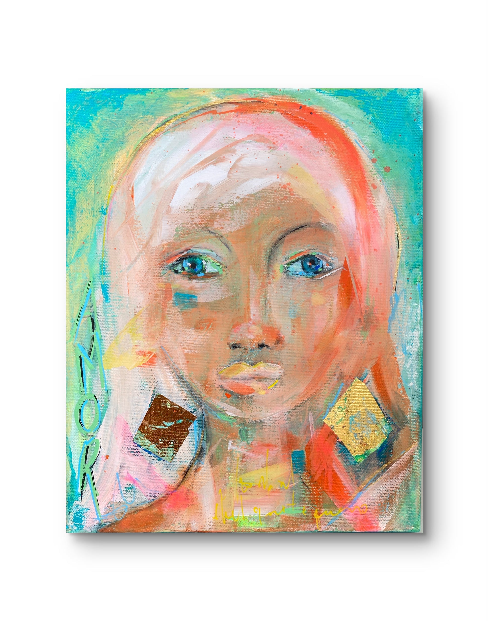 Unique painting created with acrylics, acrylic inks, charcoal and gold details on CANVAS